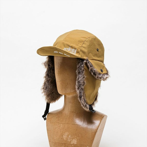 ボリュームのあるエコファーを組み合わせたトラッパーキャップが、Manhattan Portage(マンハッタンポーテージ)から初登場です。本体には、本格的なアウトドアブランドでも使用される撥水機能を備えたナイロンタフタを使用しています。合繊特有のテカリが少なく、自然な光沢で天然素材のような柔らかい風合いが特徴です。