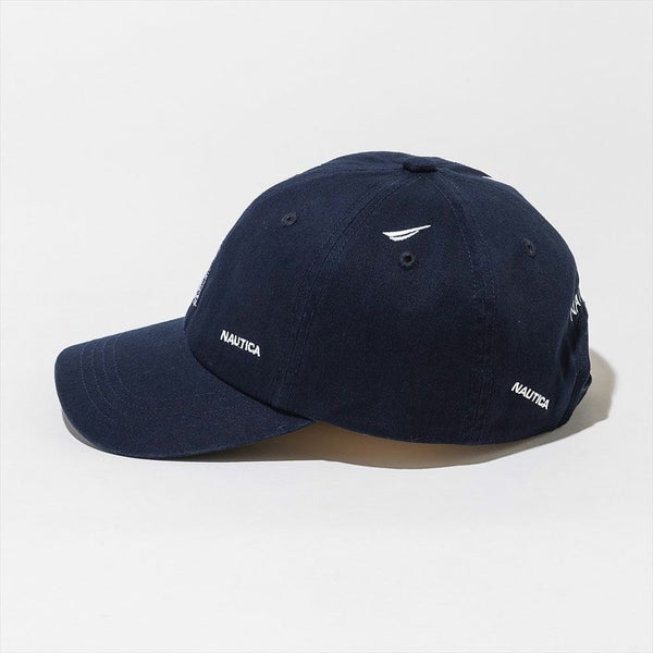 全体に散りばめられたロゴ刺繍が特徴的なNAUTICA(ノーティカ)の6Pキャップです