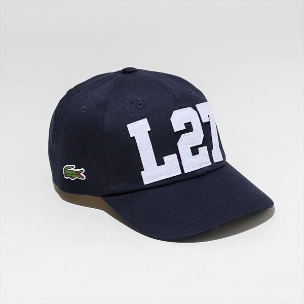 1900年から現在も続いているテニスの国際大会のデビスカップで、ルネ・ラコステが優勝した年が1927年です。それをデザインソースにした「L27」のビッグロゴをフェルトワッペンでフロントに配した、スポーティなモデルです。
