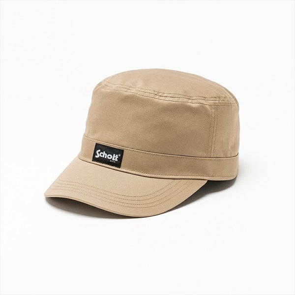 フロントに配したSchott(ショット)のブランドネームが映えるシンプルなワークキャップです。ワーク感のある土っぽい色味ですが、T/Cツイルのさらっとした生地感でライトに仕上がりました。