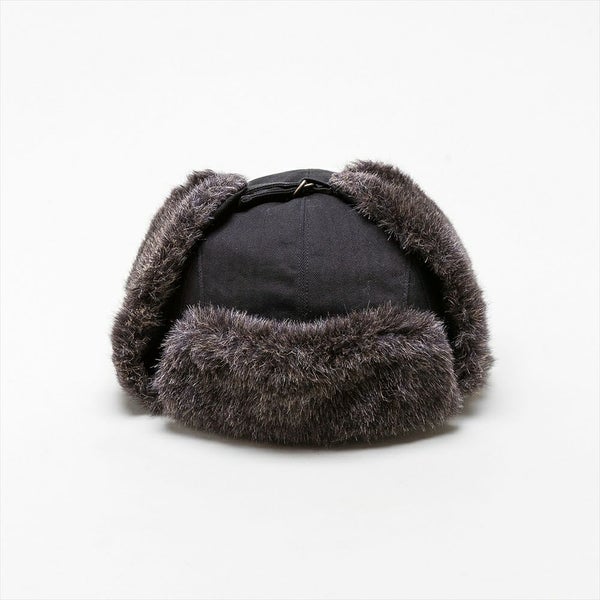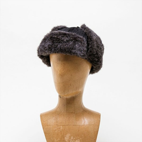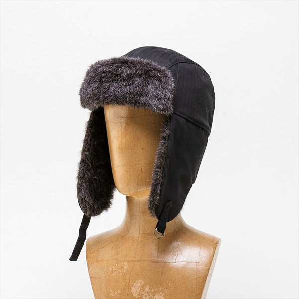 コットンヘリンボーンとフェイクファーを使用し、ヴィンテージ感のあるフライトキャップに仕上げました。耳当て部分を下ろすと、古着好きな方にはたまらないであろう、労働者の証として使用されていたユニオンチケットを模したSchott(ショット)オリジナルネームが付いています。