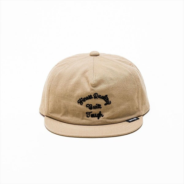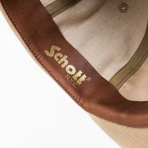 12ozのヘビーチノクロスを使用した、Schott(ショット)のショートブリムキャップです。洗いをかけて馴染ませた味のある風合いに加えて、フロントのチェーンステッチで表現したロゴ刺繍が特徴です。ここまでくれば、刺繍の色もオレンジやマスタードなど派手な色をチョイスしがちですが、あえて白黒にし落ち着きのある印象にしました。