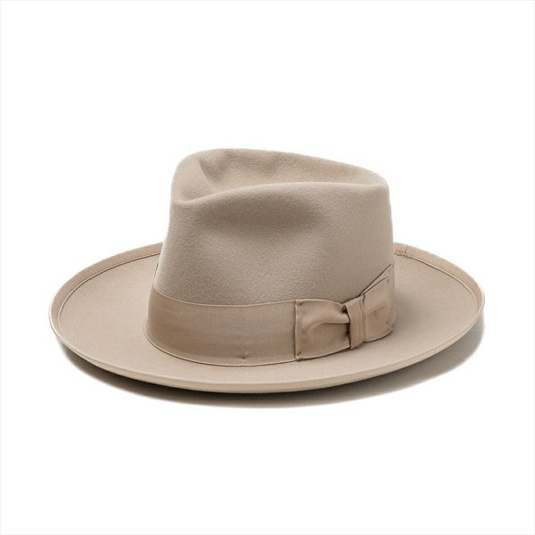 1940年代に登場し人気を博した、STETSON (ステットソン)の代表モデルSTETSONIANを完全復刻させたモデルです。ハイクラウンでワイドブリムの王道のシルエットですが、これまでの展開にあまりないきれいなライトベージュが新鮮です。