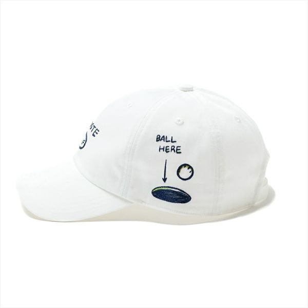 ゴルフのワンシーンをイメージしたグラフィックを手描き風でコミカルに描いた、LACOSTE(ラコステ)のキャップです。ポップなアートワークを使用しながらも、あえてモノトーンで仕上げているのがポイントです。