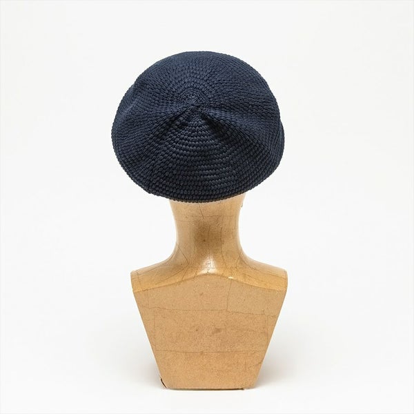 ざっくりとしたコマ編みで、ニット帽の様にラフに被れますがカジュアルになり過ぎないのが嬉しいポイントです。THE FACTORY MADE(ザファクトリーメイド)のこのモデルは、程よい太さのコットンヤーンを使用し柔らかい被り心地が特徴です。