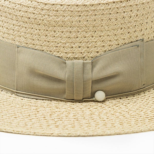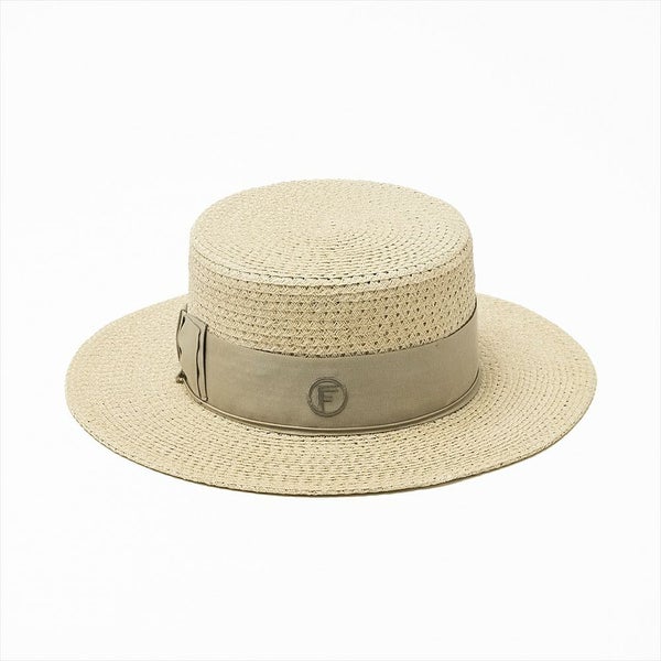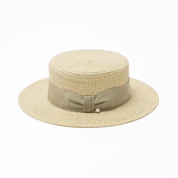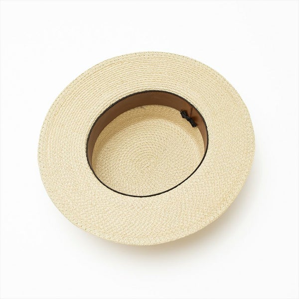 一般的なペーパーブレードハットには重量感のあるものが多いですが、このモデルでは籠目で編まれた軽量感のあるペーパーブレードを使用しています。軽さがあるので盛夏でも快適に着用出来る、THE FACTORY MADE(ザファクトリーメイド)のカンカン帽です。