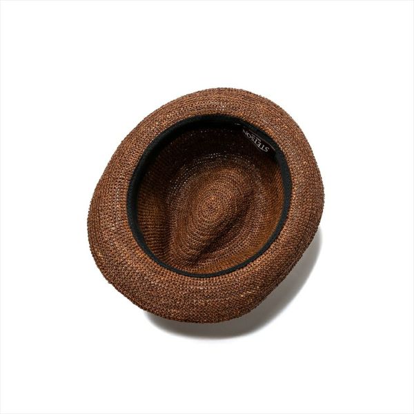 夏の定番素材であるラフィアを、細編みでざっくりと編んだ帽体を使用したSTETSON(ステットソン)のハットです。ソフトで風通しが良く夏の暑い時期でもストレスの少ない被り心地です。