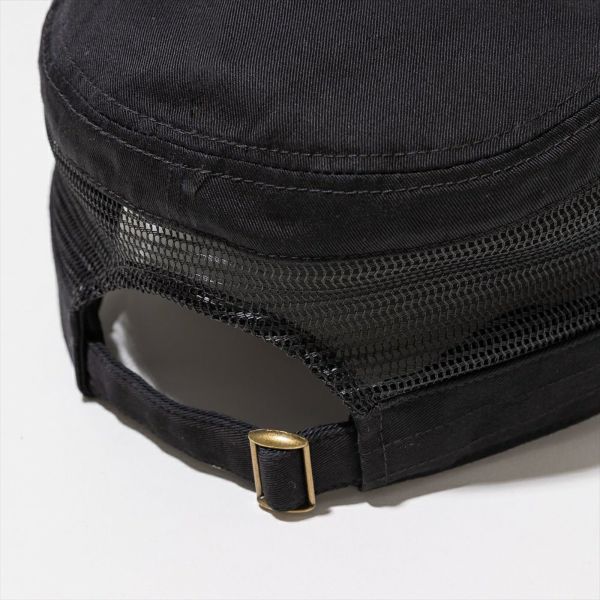 【素材】コットンツイル / メッシュ 【素材感】薄手+メッシュ 【組成】本体:綿100% / メッシュ部分:ポリエステル100% 【生産国】中国 【機能】サイズ調整(バックアジャスター)/ 手洗いOK 【寸法】標準(58cm):頭囲約56cm~60cm 標準:高さ約10.5cm / ブリム長さ約7cm ※寸法はあくまでも目安なので、若干の誤差が出る場合がございます