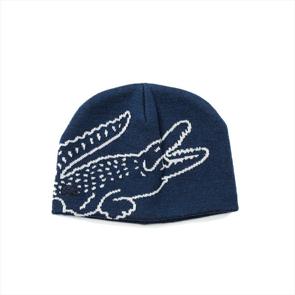 インパクトのあるジャカードが特徴的な、LACOSTE(ラコステ)のニットキャップです。