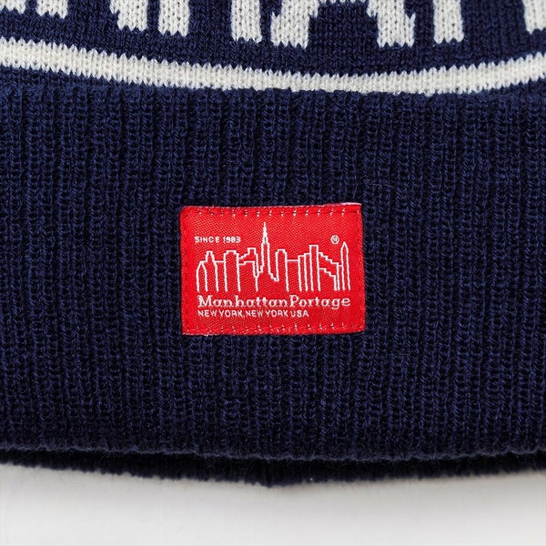 スポーティなラインとカレッジロゴ風に入れたManhattan Portage(マンハッタンポーテージ)のブランドロゴがキャッチーな、ジャカードニットワッチです。近年トレンドだった、浅めのショートワッチとは対照的にボリューム感のあるシルエット+ミックス糸の大きめのポンポンが今の気分です。