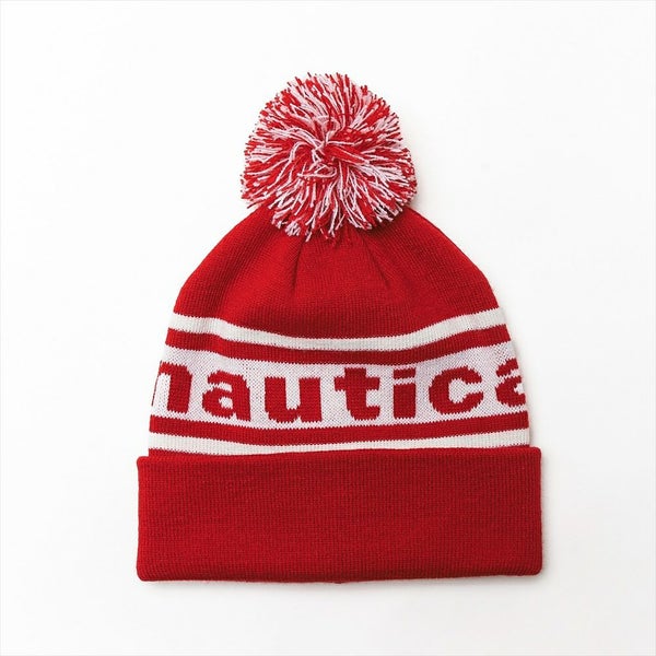 スポーティなラインとカレッジロゴ風に入れたNAUTICA(ノーティカ)のブランドロゴがキャッチーな、ジャカードニットワッチです。近年トレンドだった、浅めのショートワッチとは対照的にボリューム感のあるシルエット+ミックス糸の大きめのポンポンが今の気分です。