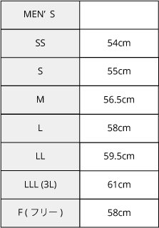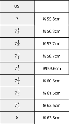 一般的な帽子のサイズチャートです。